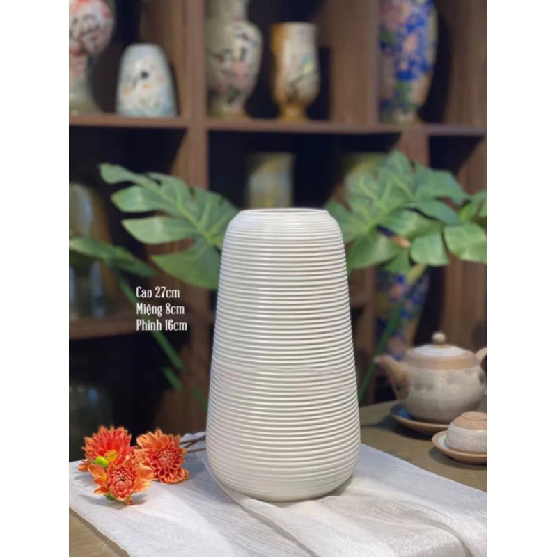 Lọ hoa gốm không chỉ dùng để cắm hoa tươi hay hoa khô, mà còn đóng vai trò như một món đồ decor, giúp không gian trở nên tinh tế, sang trọng và gần gũi với thiên nhiên.
